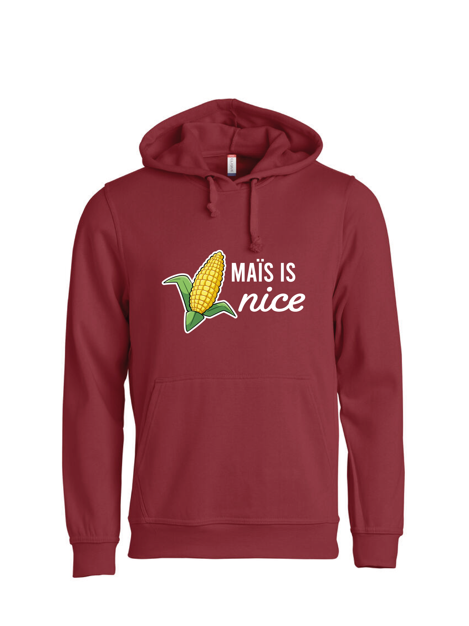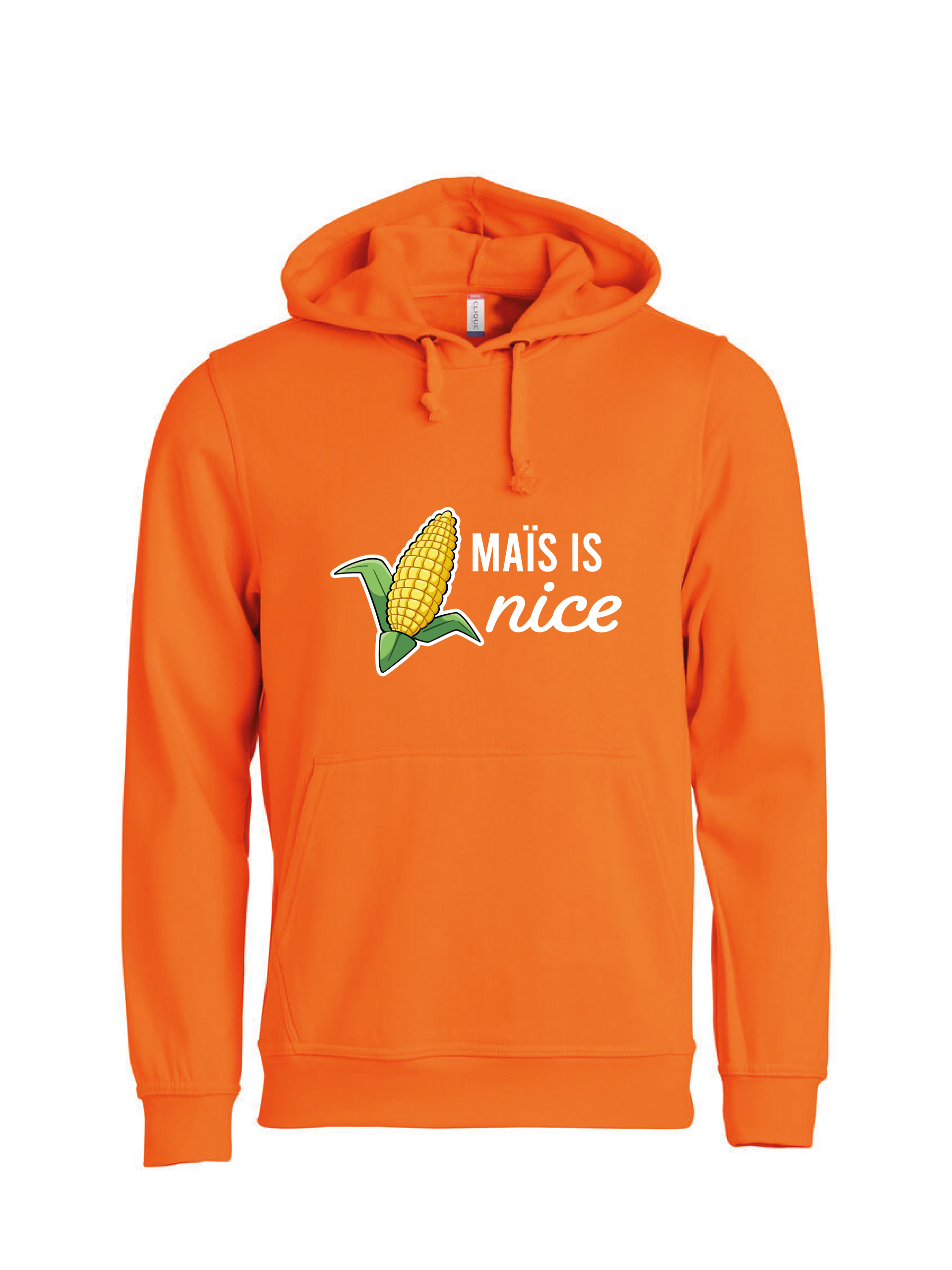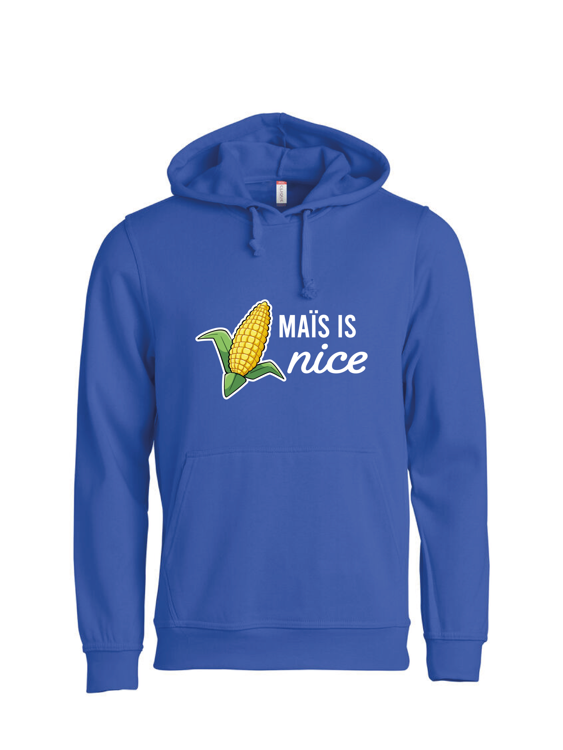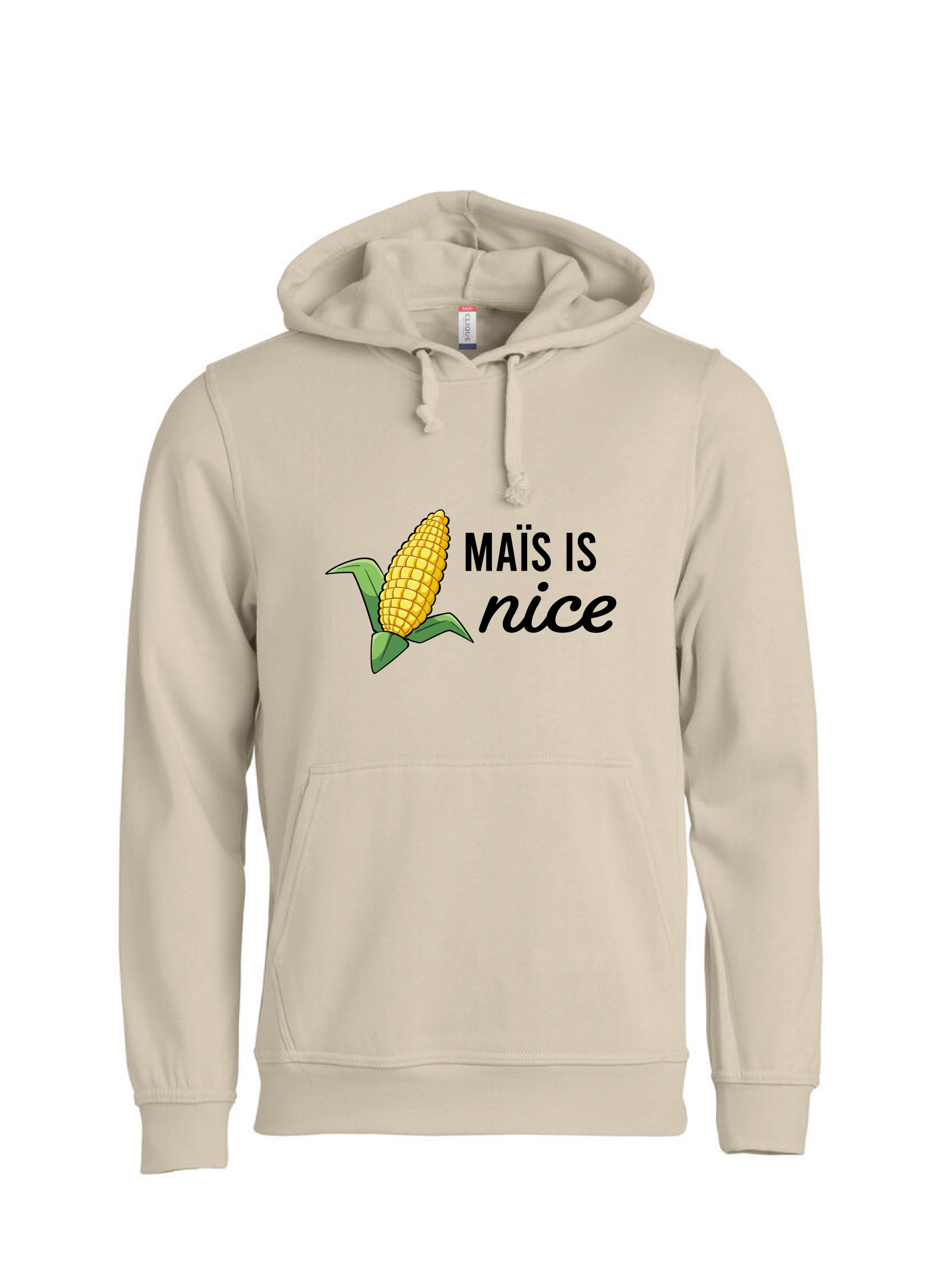 Toffe hoodie met de tekst Mais is nice! Leuk om zelf te dragen of cadeau te geven.