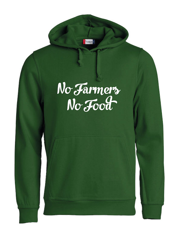 Hoodie No Farmers No Food Groen met witte tekst