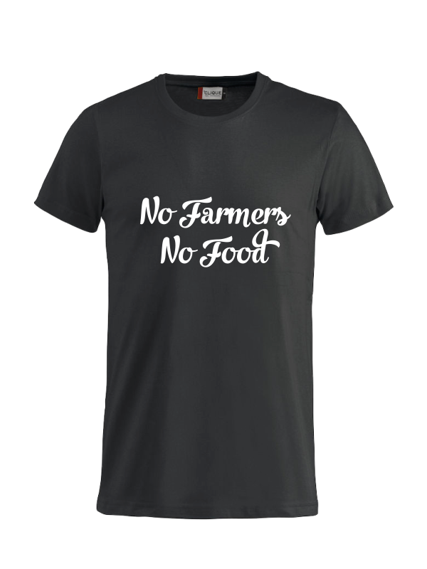 T-Shirt No Farmers No Food Zwart met witte tekst